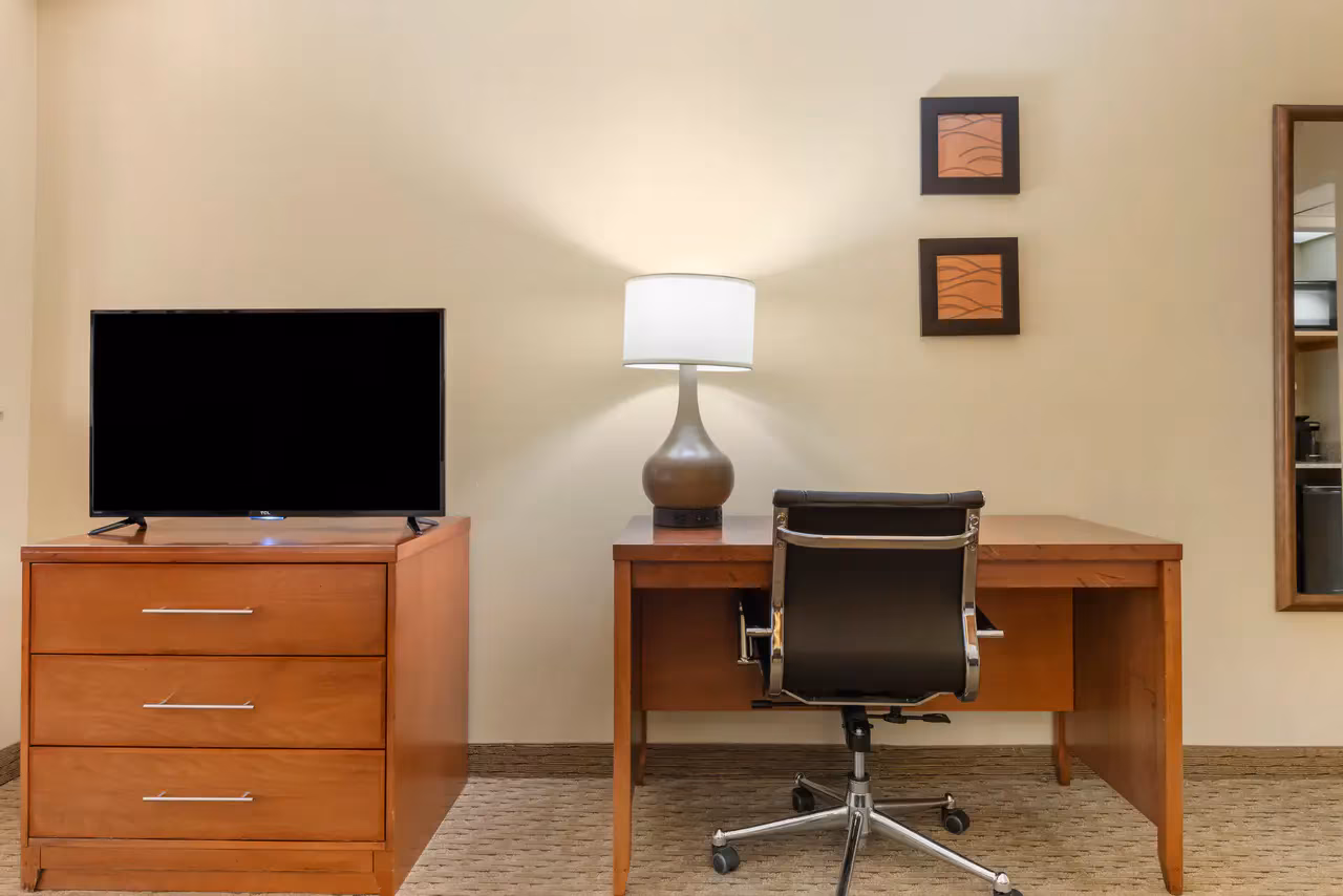 After a day of work or exploring, unwind in our indoor heated pool or relax in the hot tub. Families traveling with children will appreciate the kiddie pool and the added value that children 18 and under stay free when booked with a parent or guardian. The outdoor sundeck offers a great place to relax and recharge, while the 24-hour fitness center helps you maintain your routine on the road.