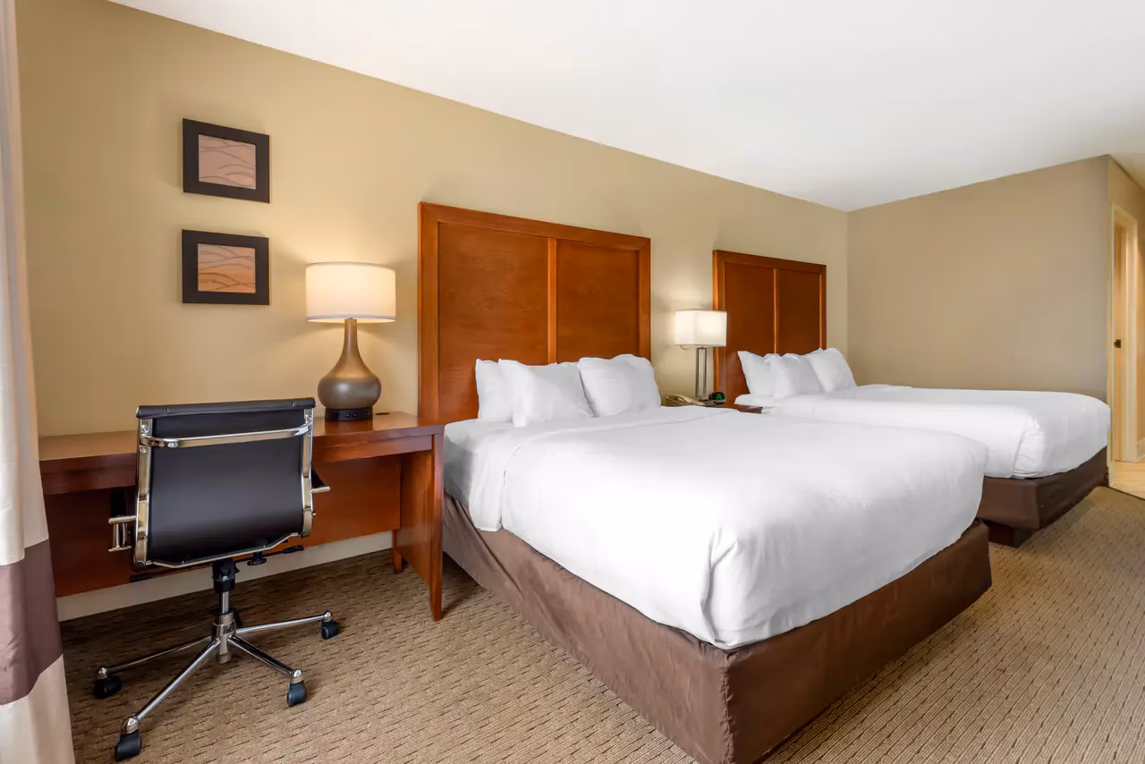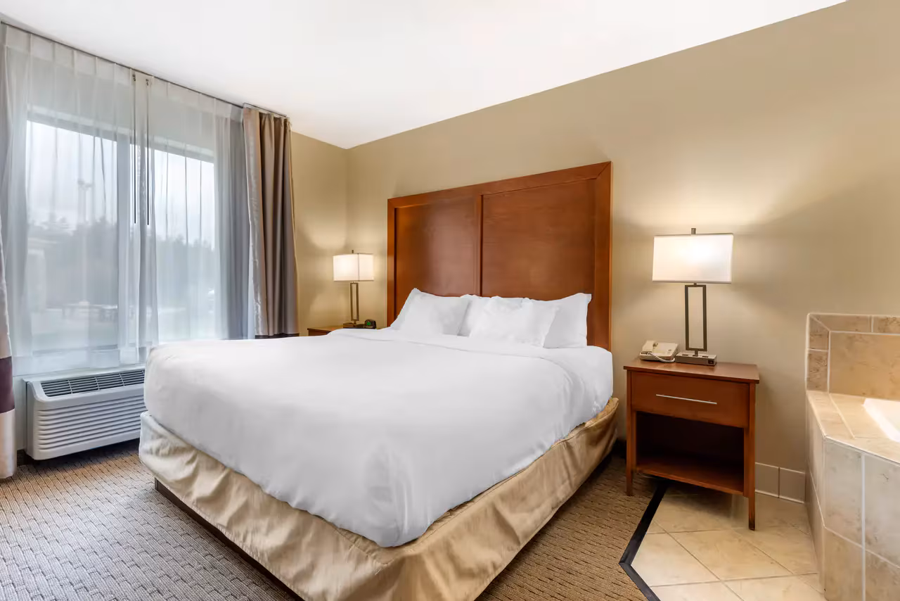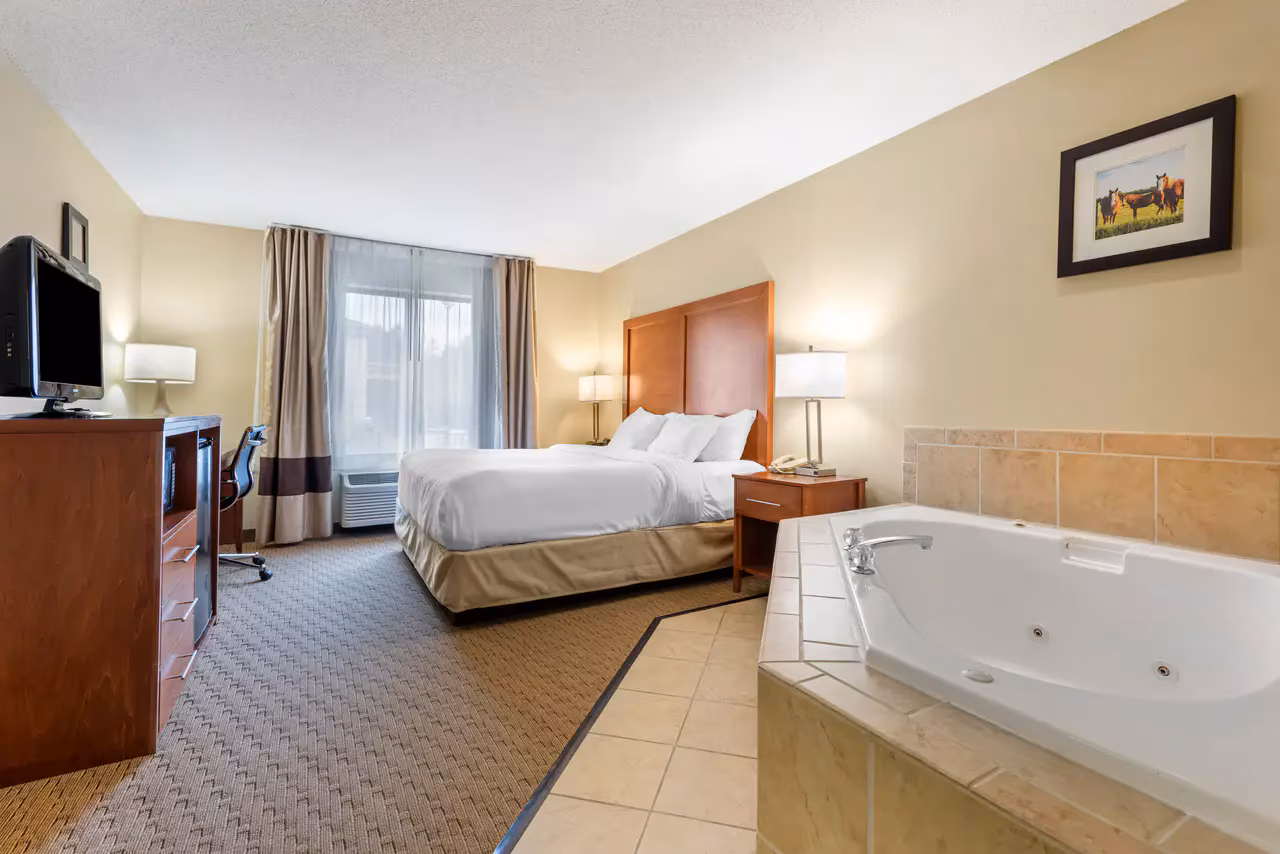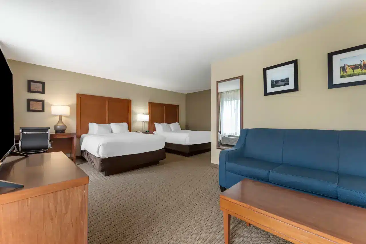 Each guest room at Comfort Inn Black River Falls WI is thoughtfully designed for comfort and convenience. Choose from standard king or queen rooms, spacious suites, poolside rooms, or upgraded hot tub suites. All accommodations include premium bedding with plush pillows, flat-screen TVs, refrigerators, microwaves, coffee makers, hair dryers, and irons with ironing boards. Select rooms also feature sofa beds, providing extra space for families or groups.