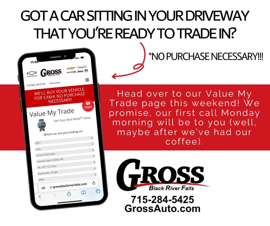 At Gross Chevrolet of Black River Falls, we’re proud to serve drivers in our community and beyond with a friendly, hassle-free car-buying experience. Ready to get started? Explore our inventory online or visit us in person, and let our knowledgeable and welcoming team help you drive away in a vehicle you’ll love.