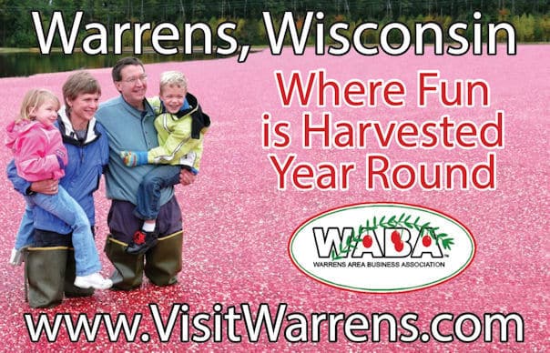 Warrens, Wisconsin – Where Fun is Harvested Year Round! Home of the world’s largest cranberry festival, Warrens hosts over 100,000 visitors each September to experience three days of shopping, food and fun. But if you’ve only visited Warrens during Cranfest, it’s time to see what we have to offer year round! See the Visit Warrens website for information on recreational opportunities including indoor and outdoor water parks, snowmobile trails, ATV routes and camping. We also have a microbrewery, restaurants and lodging options. The Visit Warrens website and Visit Warrens Facebook page are maintained by the Warrens Area Business Association. Any area business is welcome to join. More information can be found at www.visitwarrens.com.